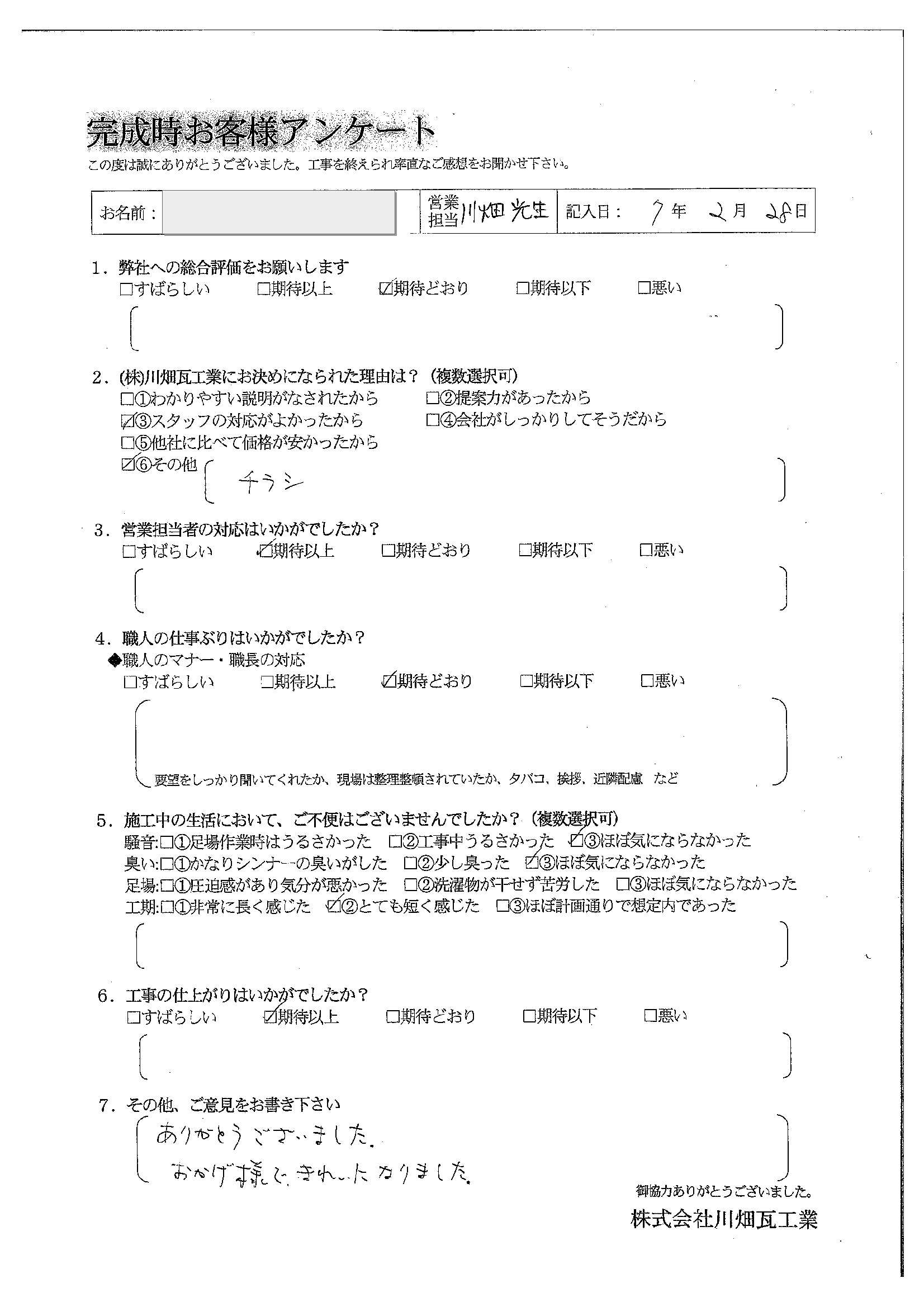川畑瓦工業にお決めになられた理由は?