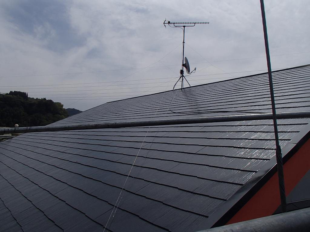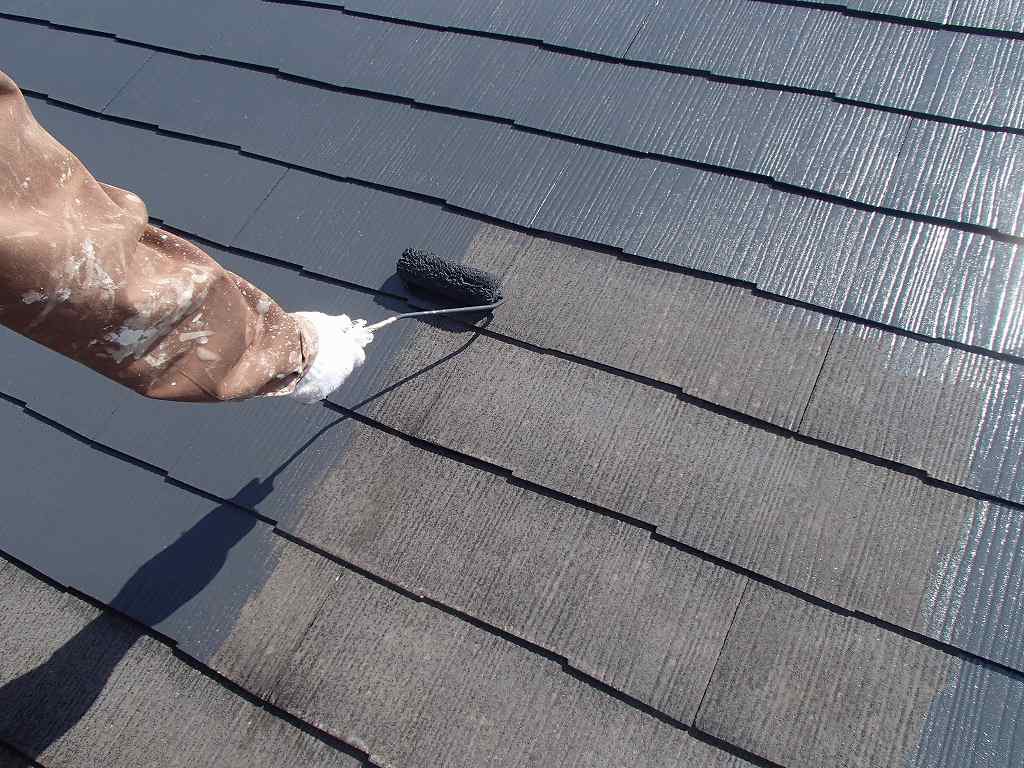 コロニアル屋根をシリコン塗料クラウドグレイ色に塗装しました。