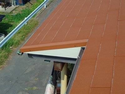 コロニアル屋根の葺替、板金・波板張替え、玄関部梁取替え工事